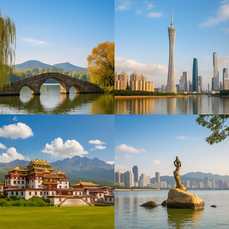 Close to Guangzhou (30–40 minutes), but much quieter and cheaper